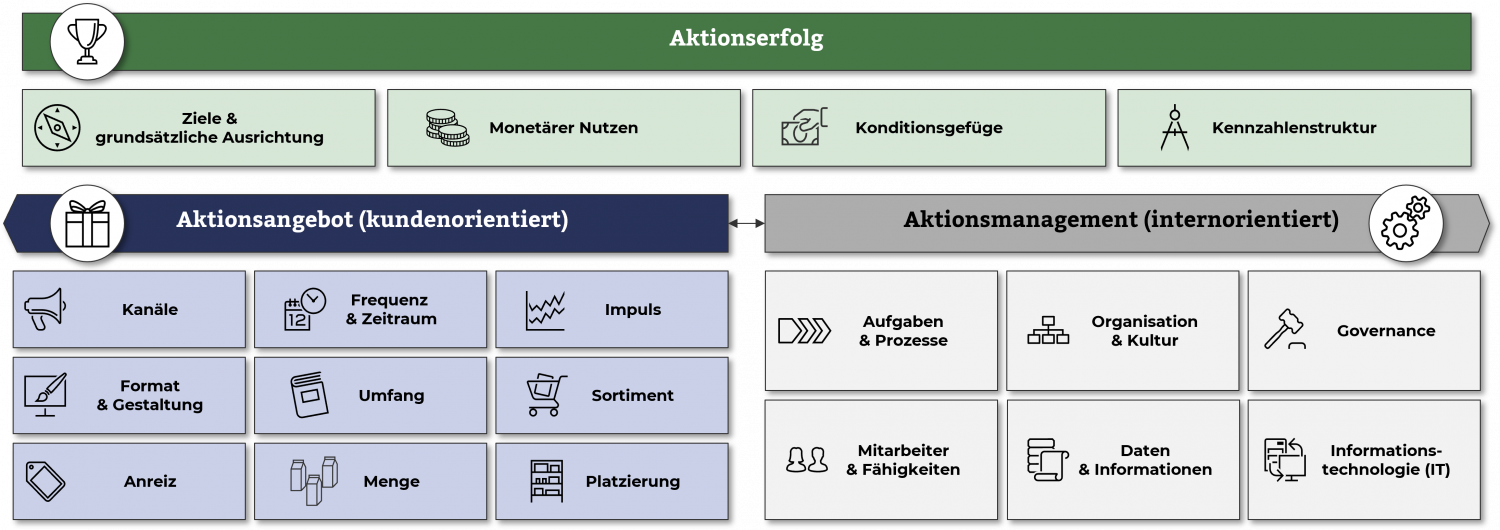 Das Quick Assessment betrachtet dabei die drei Perspektiven des Aktionsgeschäfts: Aktionserfolg, Aktionsangebot und Aktionsmanagement.