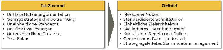 - Stammdatenerfolg: die Frage, welchen messbaren Beitrag Stammdaten zu Effizienz, Umsatz oder z.B. Time-to-Market leisten sollen